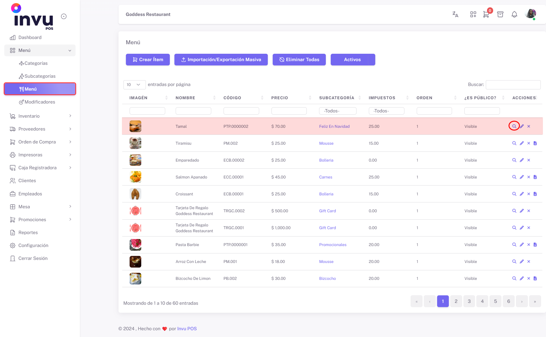 - Acceso a la Sección de Menú: Dirigirse a la pestaña Menú, dentro de esta pestaña, se selecciona la sección Menú.