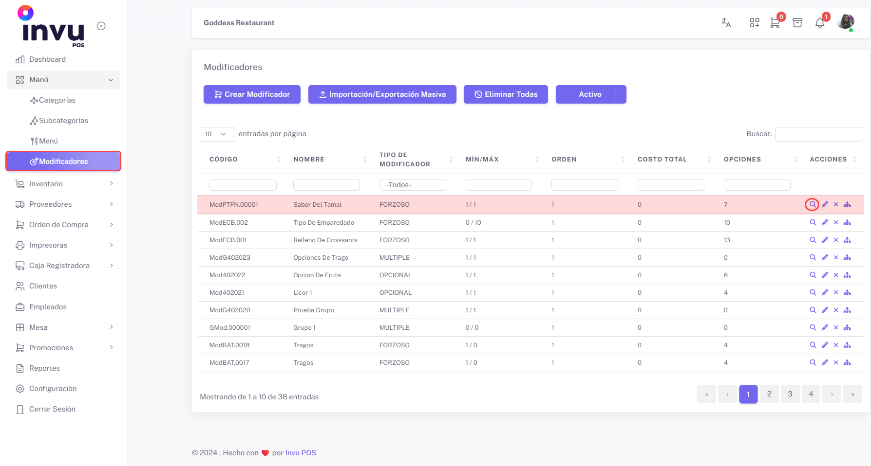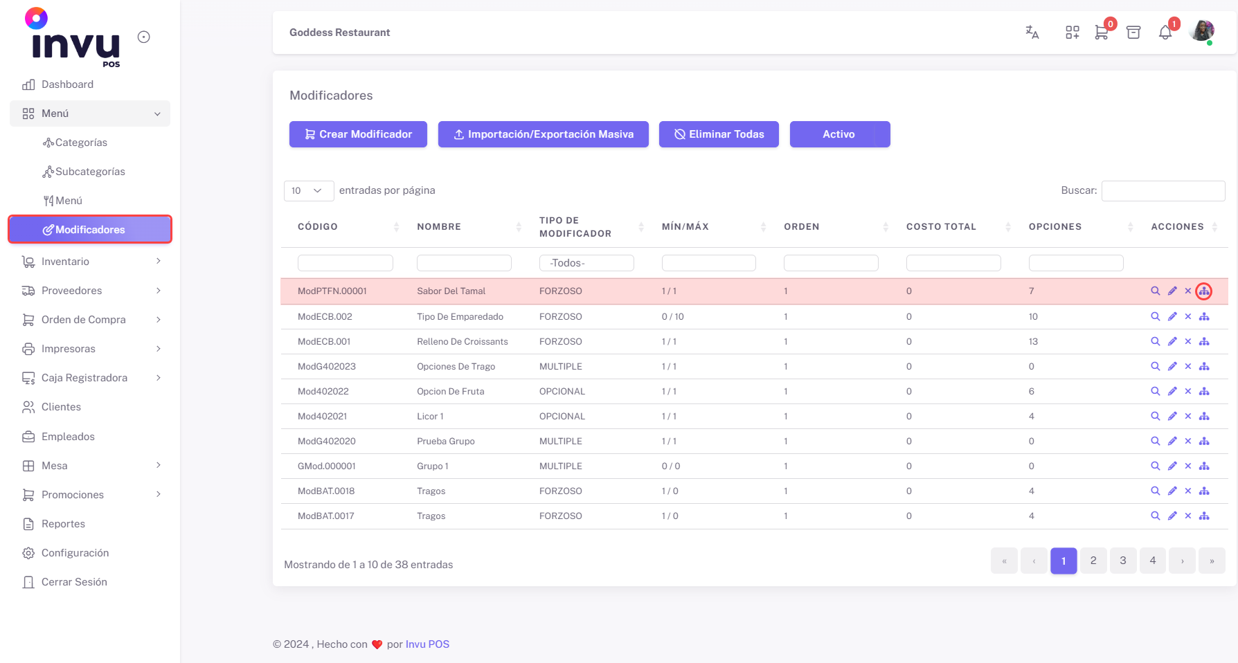 - Acceso a la Sección de Modificadores: Inicie sesión en el sistema y navegue hasta la pestaña Menú. Dentro de la pestaña Menú, seleccione la sección Modificadores.